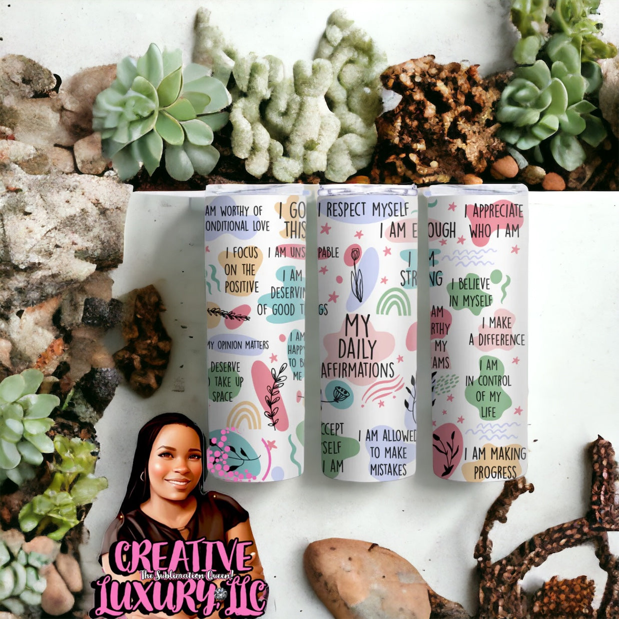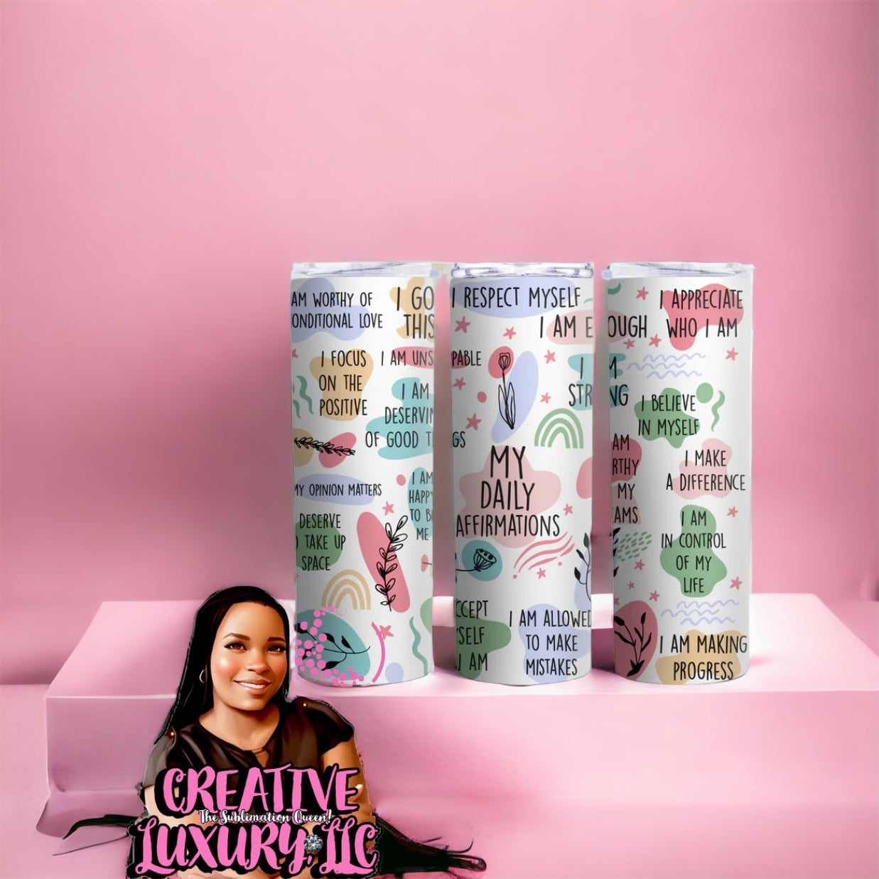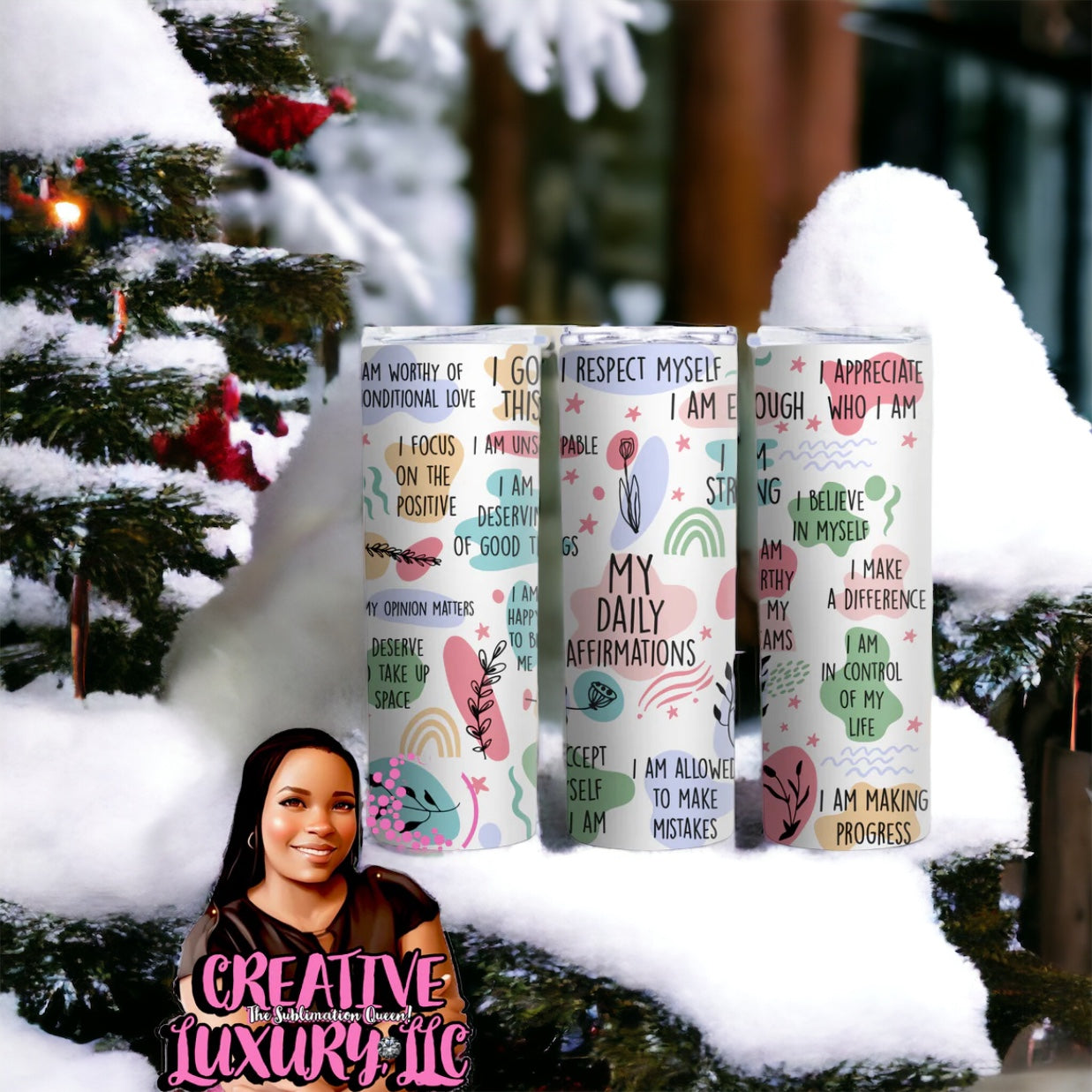 Adopte la fusión de positividad y practicidad con el Affirmation Skinny Tumbler. No es solo un vaso, es una herramienta para el empoderamiento, un vehículo de aliento y una dosis diaria de inspiración. Beba, crea y manifieste sus sueños con cada momento lleno de afirmaciones.