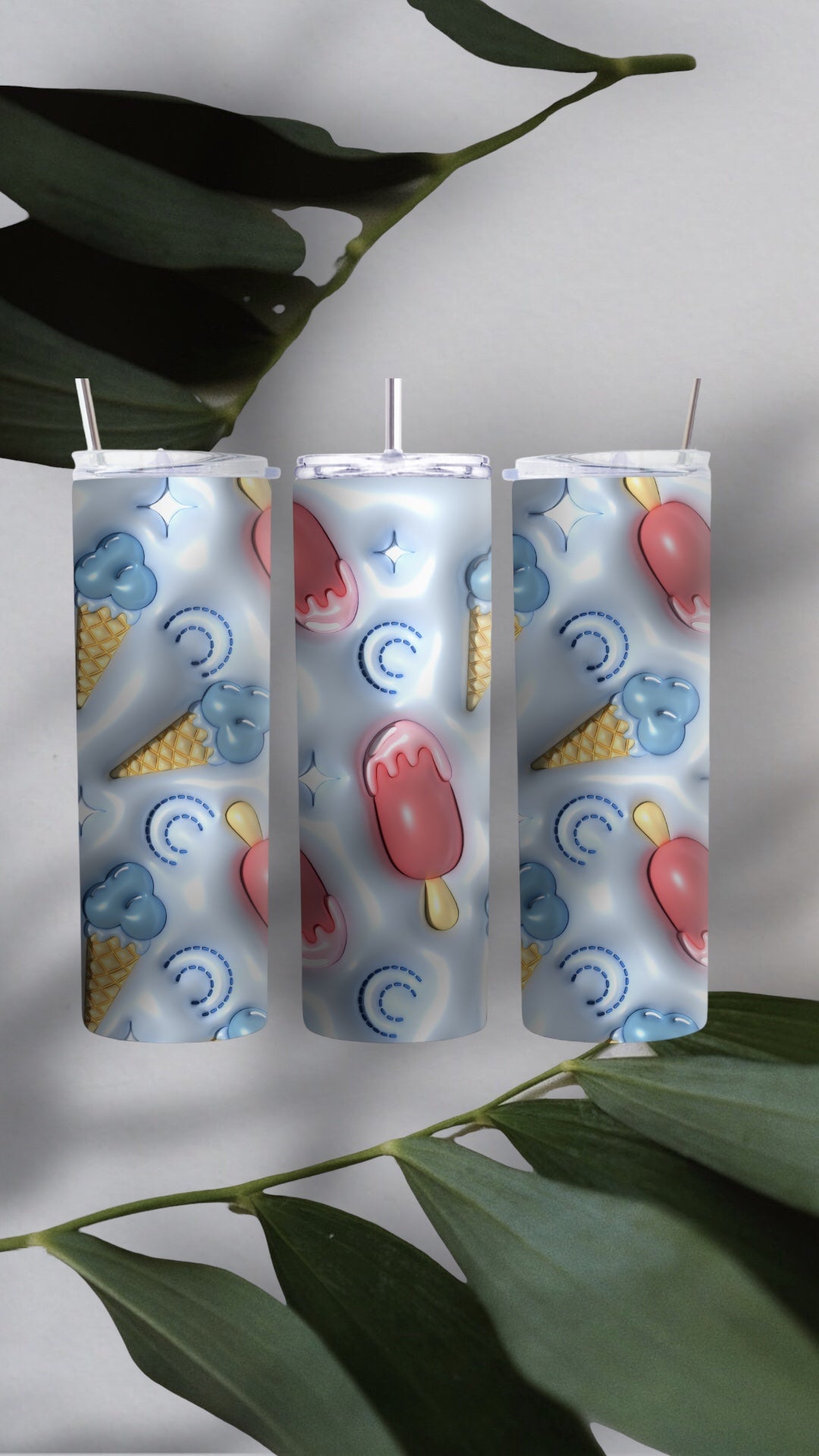 Mejora tu experiencia de hidratación con el vaso delgado Blue 3D Puff Ice Cream de 20 oz . Diseñado meticulosamente para quienes aprecian el estilo y la funcionalidad, este vaso es el compañero ideal para tus aventuras diarias.