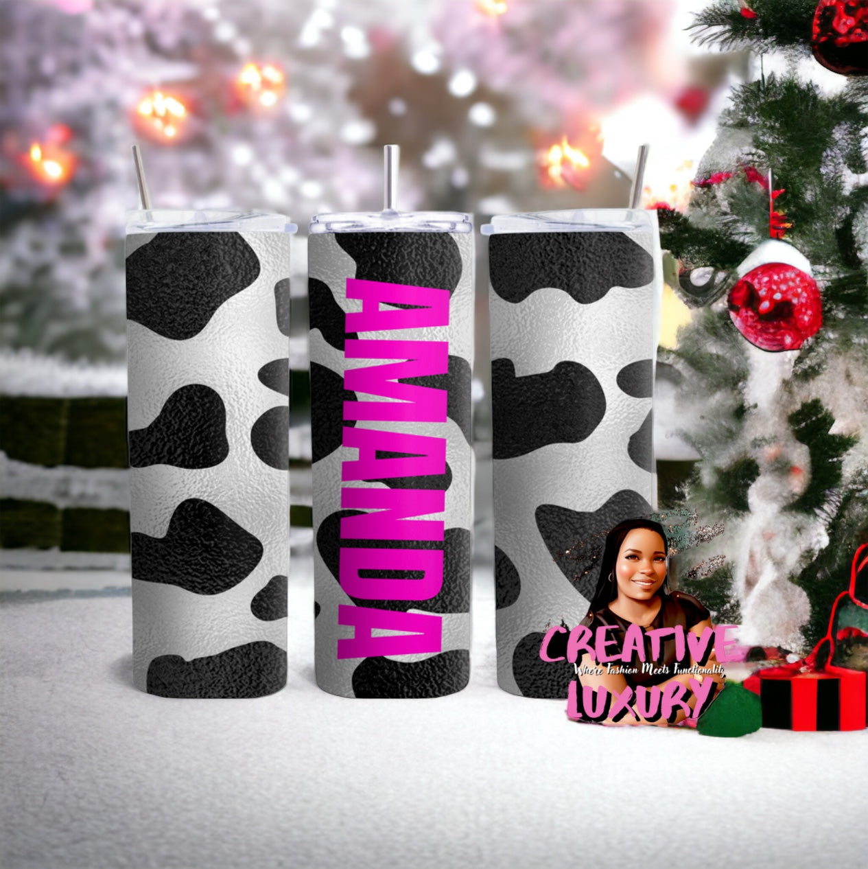 Vaso delgado de 20 oz con estampado de vaca personalizado