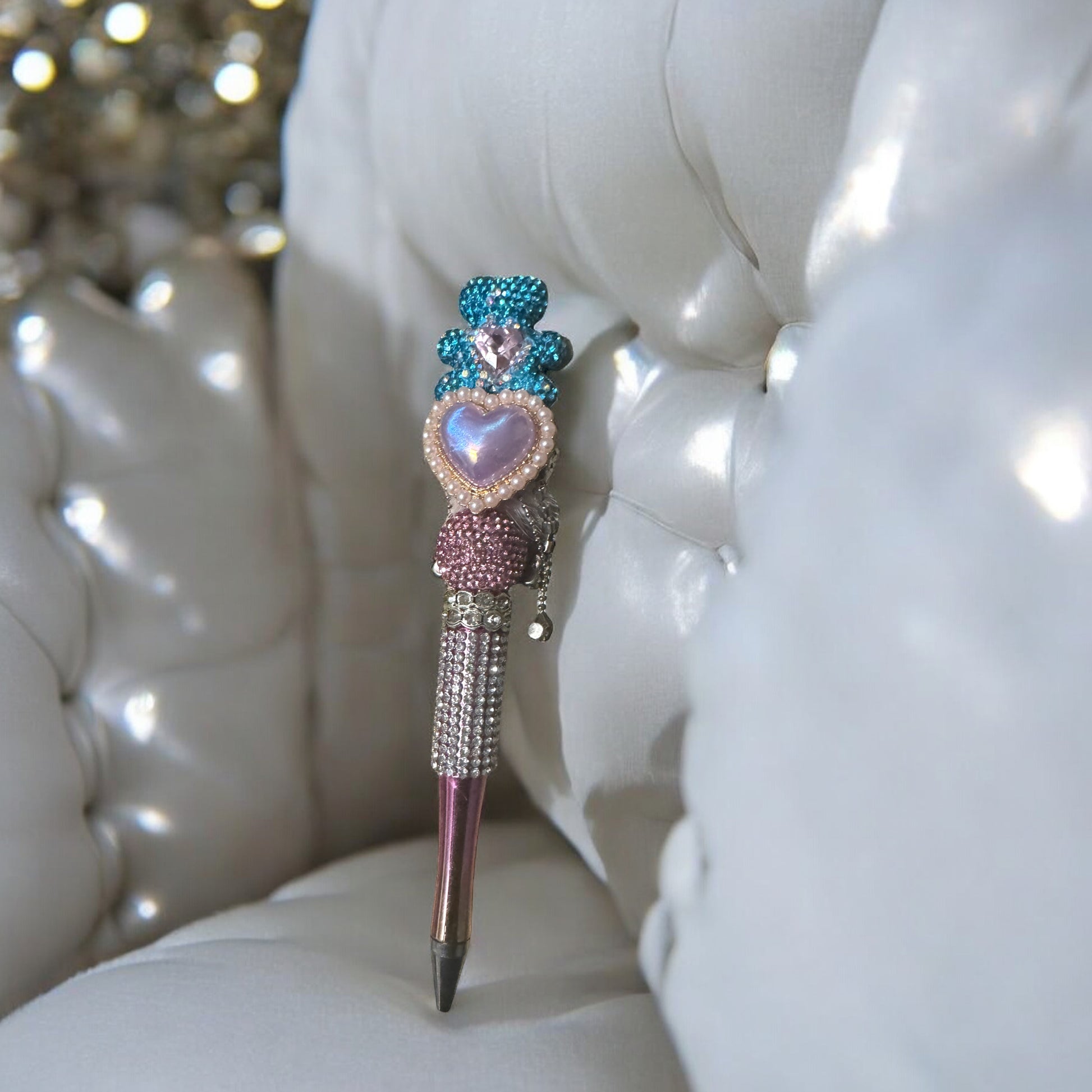 Bolígrafo recargable con dije de corazón brillante
