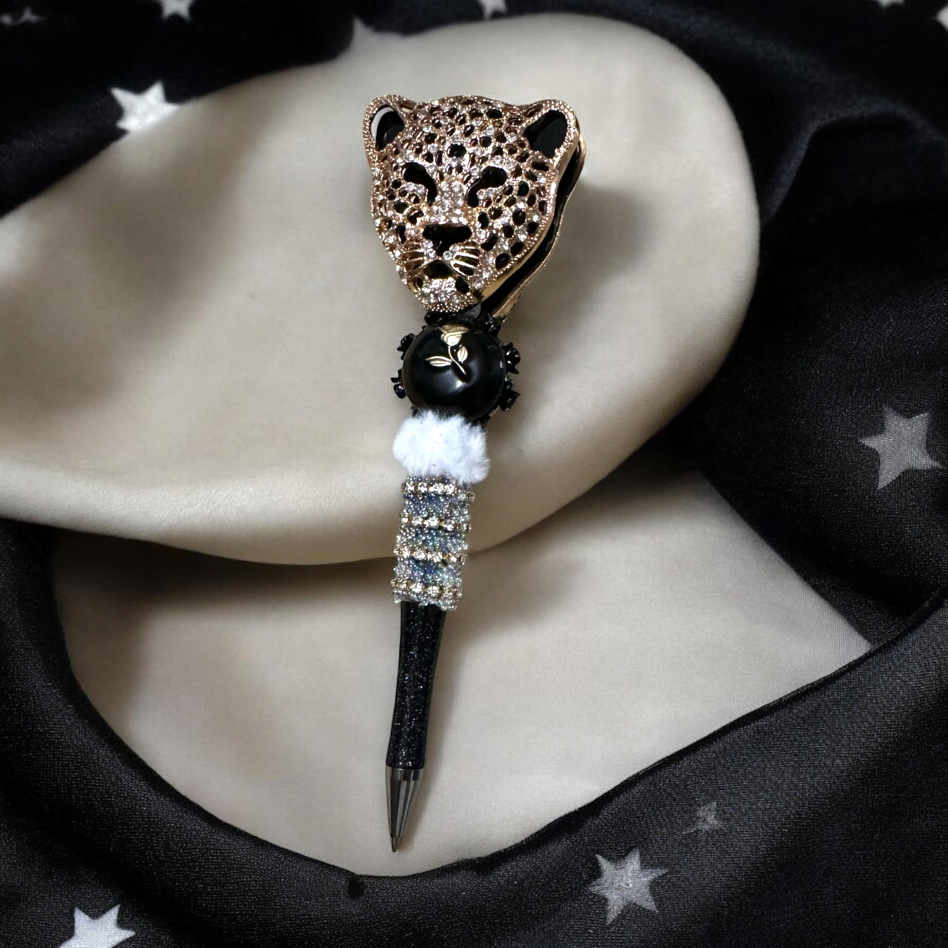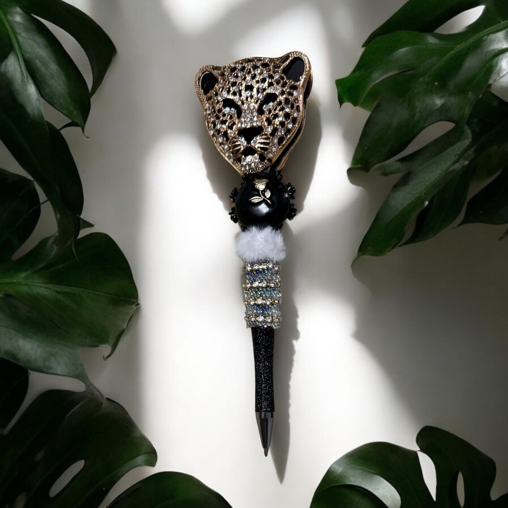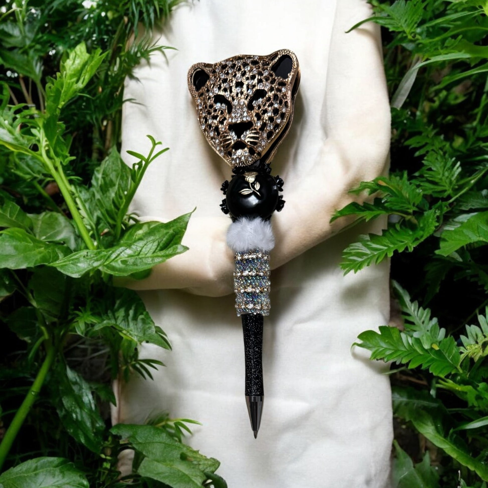 Presentamos el bolígrafo definitivo para quienes aprecian el lujo y el estilo audaz. Este elegante bolígrafo recargable presenta elegantes detalles en negro y dorado que le dan un aspecto atemporal y sofisticado. Lo más llamativo es su gran adorno en forma de cabeza de león, diseñado de manera intrincada y adornado con deslumbrantes tachuelas de diamantes de imitación, que le agregan un toque de estilo regio a su experiencia de escritura. Perfecto para uso personal o como un regalo memorable, este bolígrafo no solo es elegante sino también práctico con opciones de recarga fáciles. ¡Eleve su escritorio o cause una impresión audaz con este accesorio de escritura único!