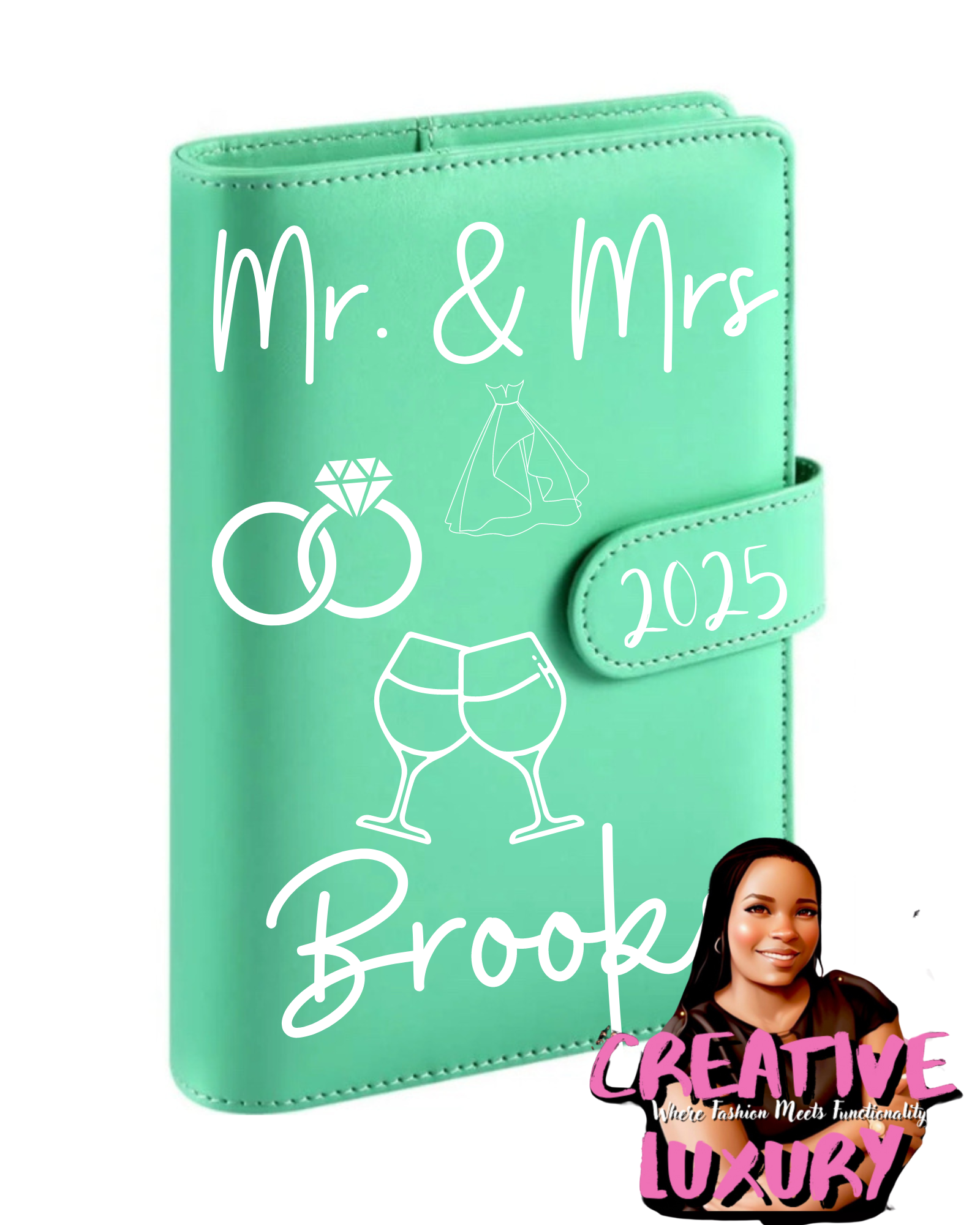 Ordering is easy! Simply provide the personalization you would like on the front of the binder along with the titles for your 6 free cash envelopes. For example: Mr & Mrs Brooks, Cake, Venue, Dress, Rings, Decoration, Shoes.